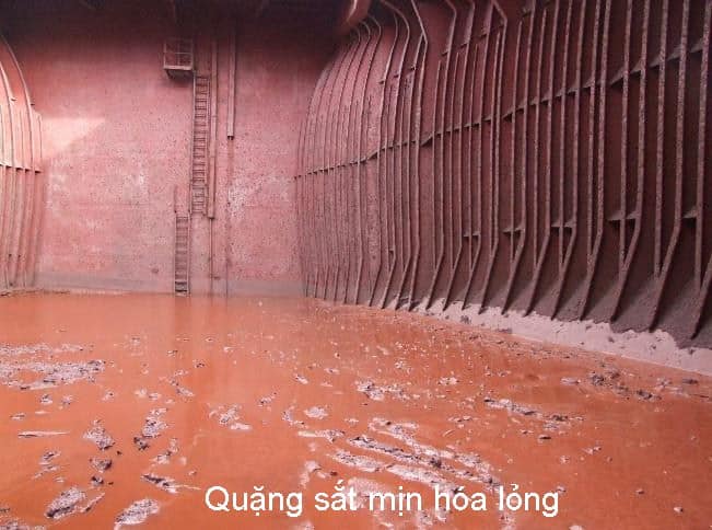 Cũng giống như rất nhiều quặng cám/mịn bao gồm cả quặng nickel, quặng sắt mịn có thể hóa lỏng và dịch chuyển nếu độ ẩm cố hữu của nó quá lớn.